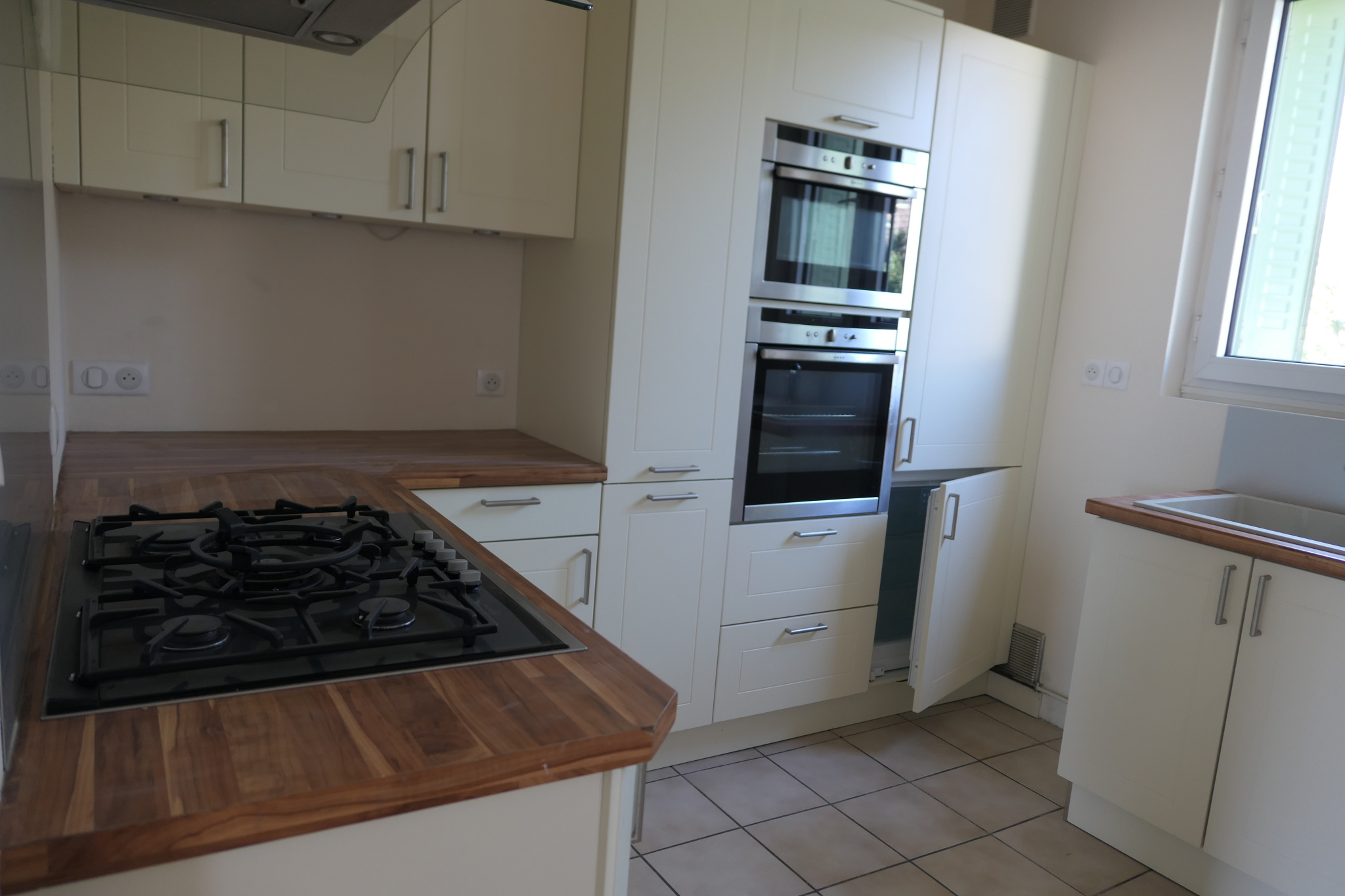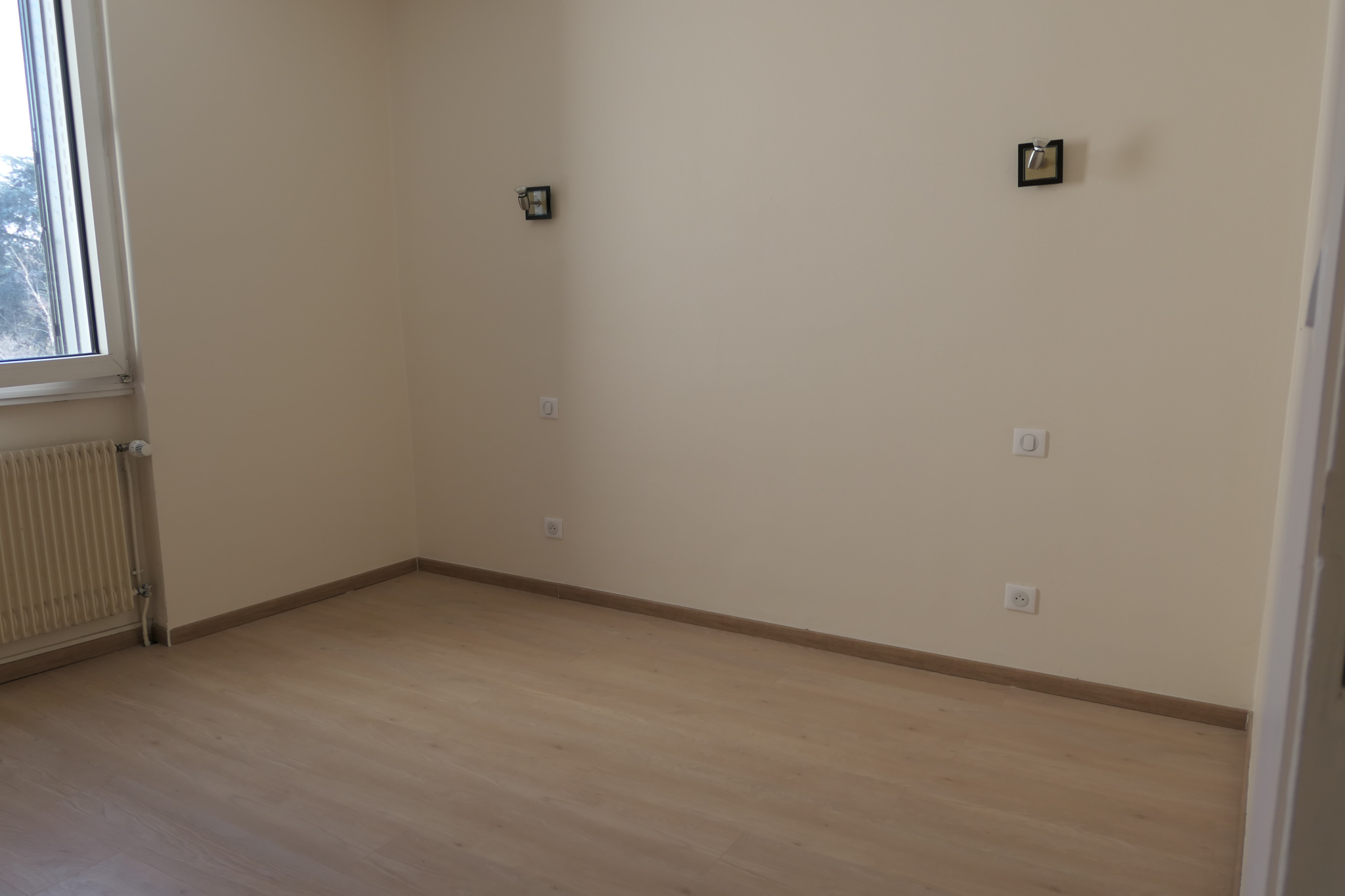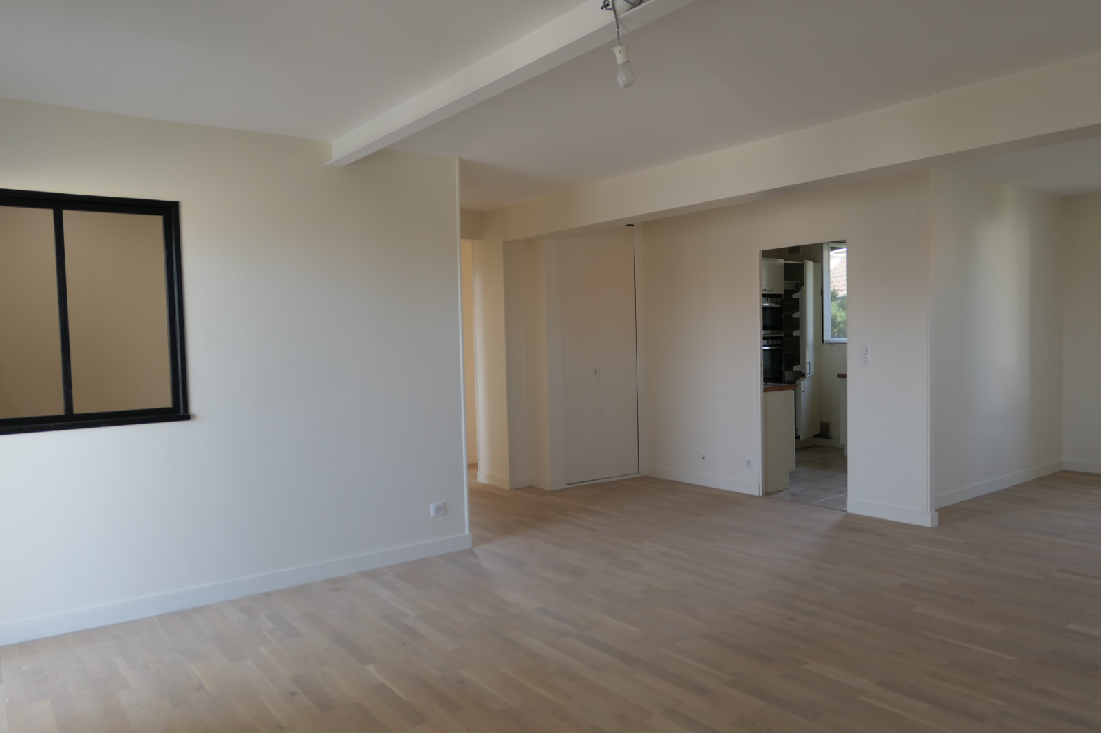 Appartement F3 très récemment rénové comprenant : entrée avec penderie, un grand séjour-salon donnant sur une terrasse ensoleilée, une cuisine aménagée et équipée (four, plaques cuisson, hotte, réfrigérateur et congélateur), dégagement, une belle salle d’eau, WC séparé, deux chambres.