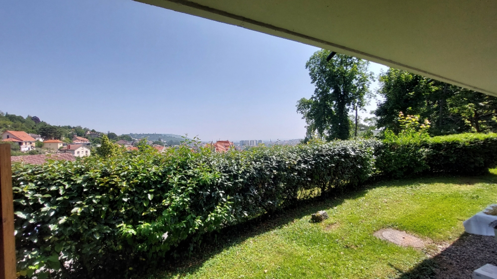 Le tout donnant sur un petit jardin non privatif offrant une belle vue sur Clermont/Chamalières