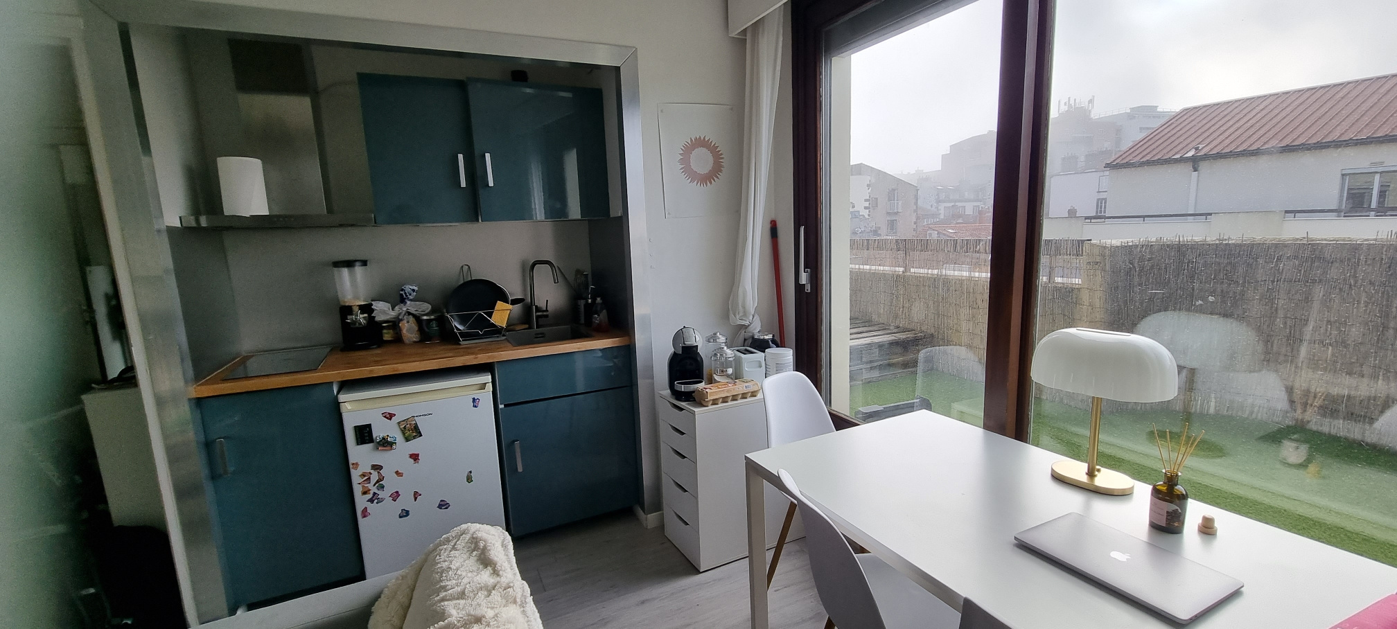 Un type F1 au 6ème et dernier étage avec terrasse et garage.Cuisine équipée ouverte sur le séjour, coin nuit, salle d'eau.Garage en sous-sol.